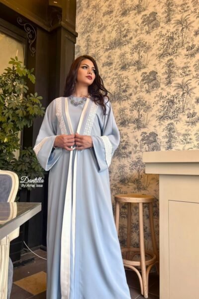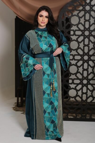 قفطان تركواز مطرز بتفاصيل فاخرة