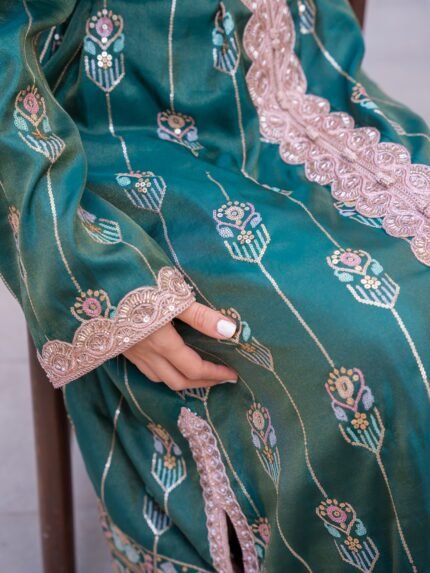 قفطان فاخر بتفاصيل غنية ونقوش تراثية