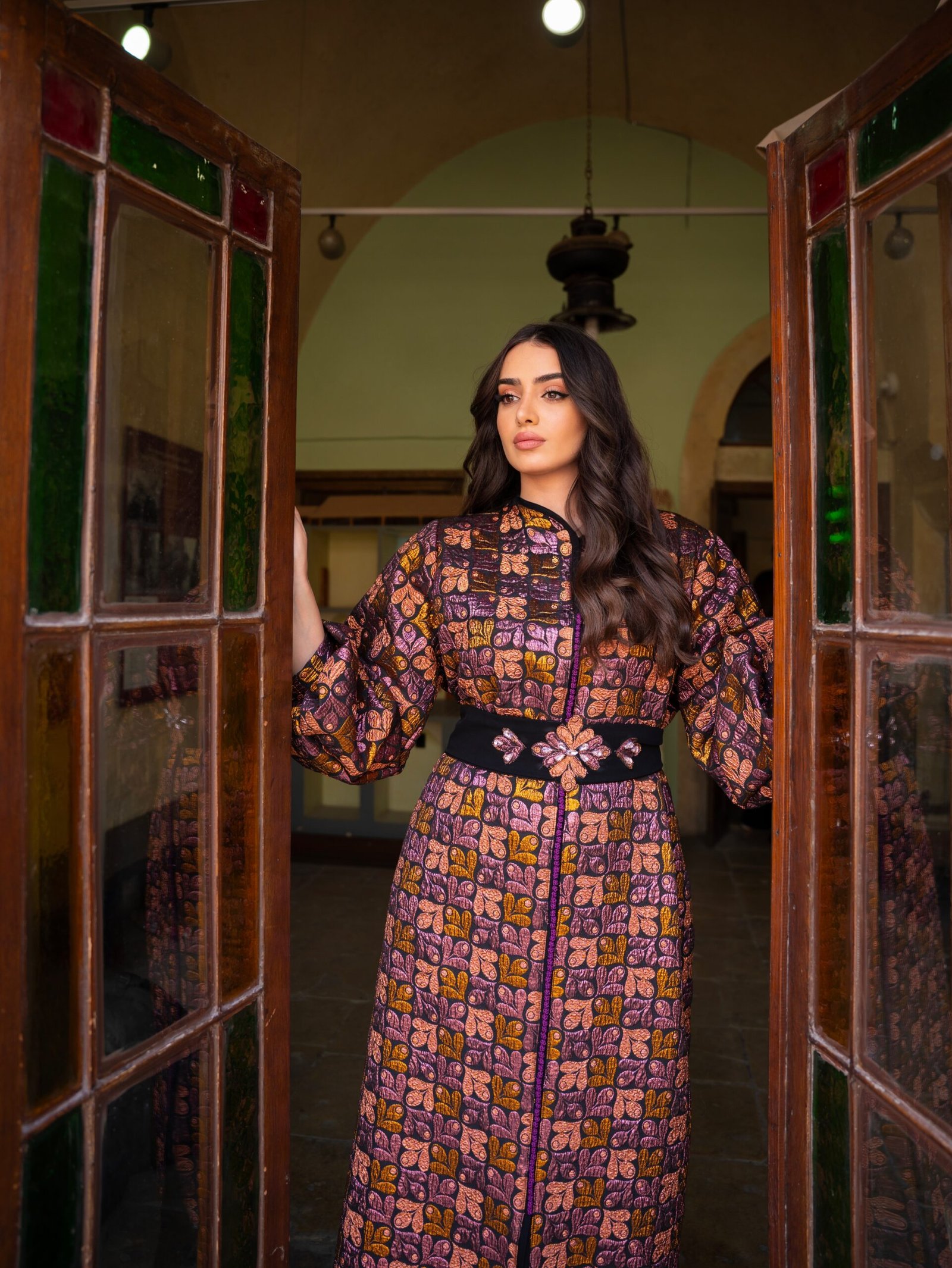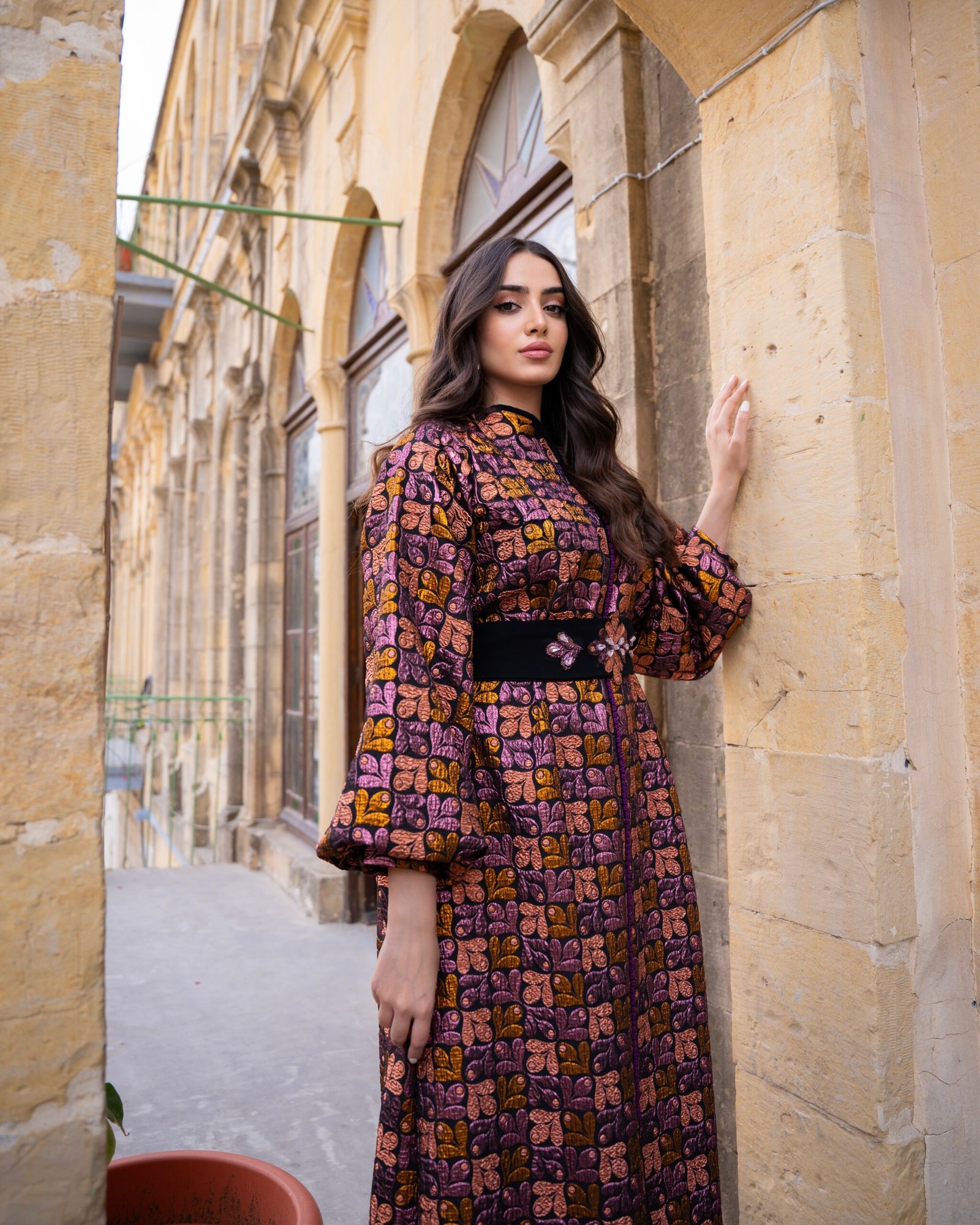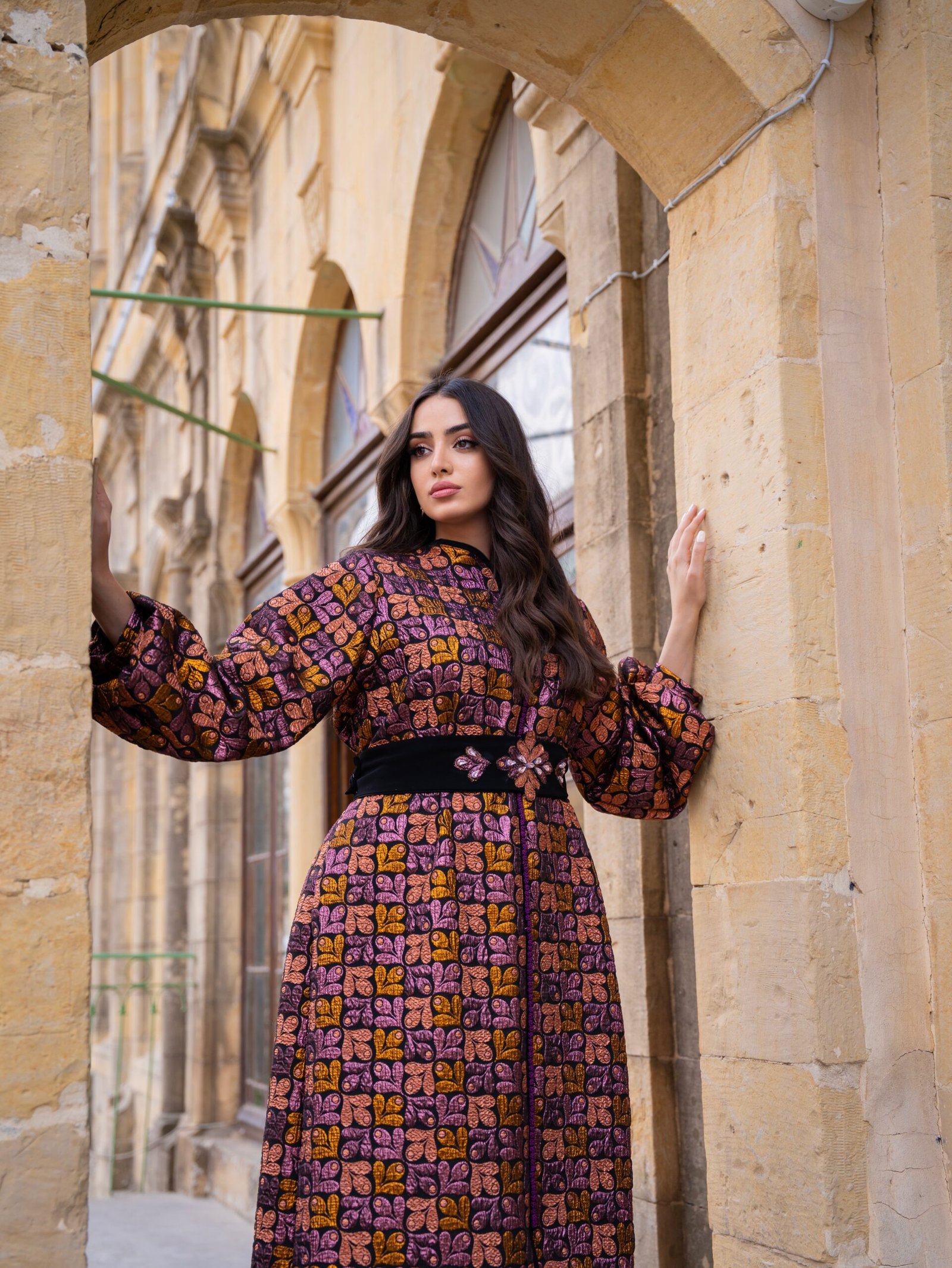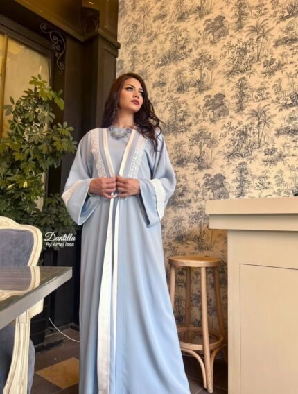 يأتي التصميم بقصة انسيابية تمنح راحة وأناقة في نفس الوقت، مع حزام أنيق يحدد الخصر ويضفي لمسة أنثوية متوازنة على الإطلالة. الأكمام الواسعة والتفاصيل الهادئة تمنح القطعة حضورًا راقيًا مناسبًا للمناسبات والزيارات الرسمية والسهرات الهادئة.